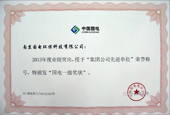 日前,南環公司被中國國電集團公司授予2013年度“集團公司先進單位”榮譽稱號,并榮獲“國電一級獎狀”。