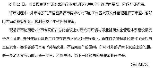 我公司開展職業健康與安全管理體系第一階段外部評審