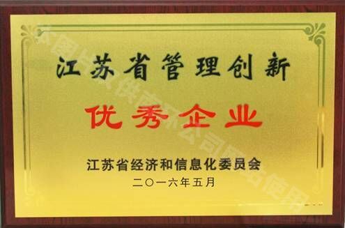 經企業自主申報,各市經信委初審、省經信委復審和名單公示等程序,近日,公司被江蘇省經濟和信息化委員會評定為“2015年度江蘇省管理創新優秀企業”(蘇經信企業〔2016〕282號)。