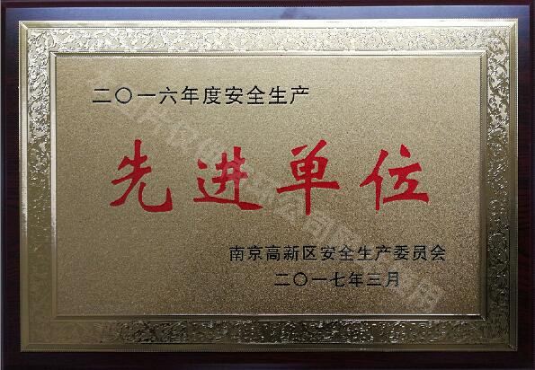 公司榮獲高新區2016年度安全生產工作 先進單位