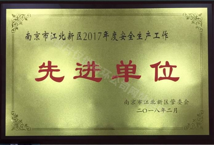 3月6日,從南京市江北新區安全生產工作會議上傳來喜訊,公司榮獲“南京市江北新區2017年度安全生產工作先進單位”稱號。