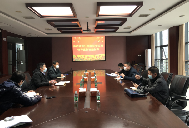 2月25日,南京市江北新區(qū)應(yīng)急管理局安生辦樹成洋主任等一行3人蒞臨公司對企業(yè)復(fù)工復(fù)產(chǎn)安全工作進(jìn)行了督導(dǎo)檢查,公司總經(jīng)理王強、黨委書記肖萍等陪同檢查。