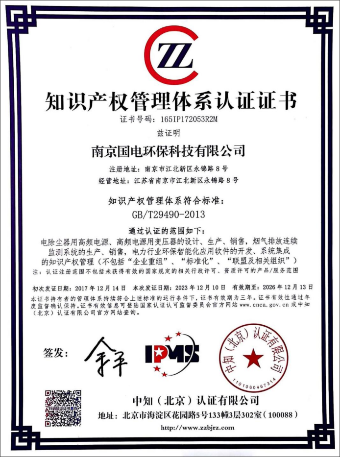 此次中知(北京)認證有限公司專家組通過查閱文件、現場查看、面談等多種方式,對公司的知識產權管理工作進行了細致評估。經過專家組認真評審,一致認為公司的知識產權管理體系符合國家標準[GB/T 29490-2013]的要求,從而順利通過了本次監督審核。