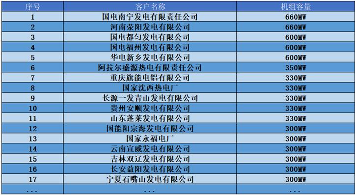 除塵器本體改造典型業績表
