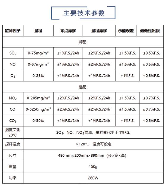 用于監測廢氣中S02、NO和02濃度,雙量程設計。