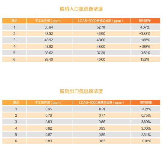 為驗(yàn)證該產(chǎn)品對(duì)氨逃逸濃度測(cè)量的準(zhǔn)確性,在某1000MW燃煤機(jī)組進(jìn)行了手工法測(cè)量與儀器測(cè)量的對(duì)比試驗(yàn)。