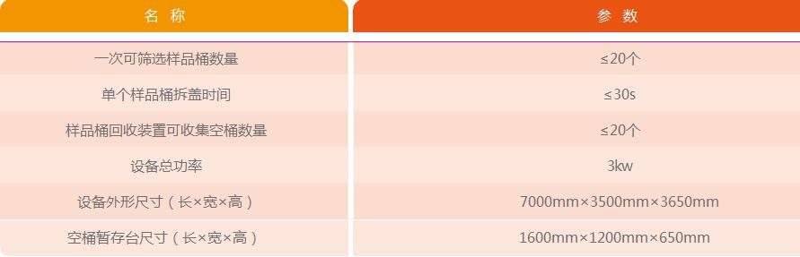 煤樣篩選裝置主要由煤樣桶自動篩選及輸送裝置、自動開蓋裝置、自動提桶倒料裝置、空桶回收平臺、桶蓋回收裝置及電控系統等組成。通過與管控系統聯接,自動識別煤樣批次編碼并篩選出需制備的煤樣。