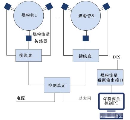 “煤粉流量測量系統”的接線盒位置靠近煤粉管上的流量傳感器。接線盒收集到煤粉管上流量傳感器的信號后傳給測量系統的控制單元。