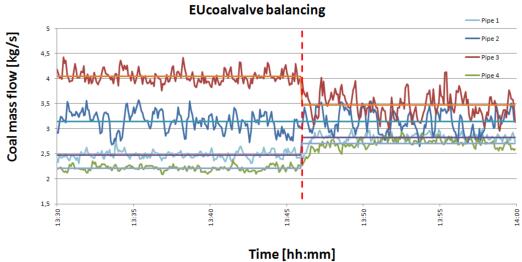 除了使用EUcoalflow傳感器測量煤粉流量并在燃燒器水平控制二次空氣外,平衡管道間的煤粉流量是優化燃燒的主要目標。