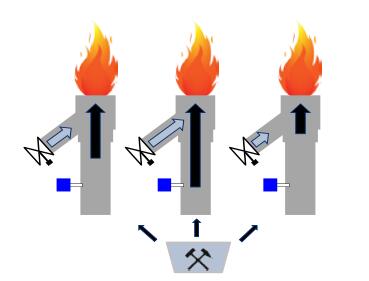 由于缺少每個燃燒器風煤比數據,電廠運行人員必須面對效率低下的運行工況,其結果是飛灰含碳量高、排放高、鍋爐效率低以及受熱面金屬超溫。如果能確保正確的風煤比值,就能通過燃燒過程的優化增加效率、降低排放和結焦。所有燃燒器風煤比管理系統能夠直接調節每個燃燒器的風煤比,這是燃燒過程最為關鍵的參數。