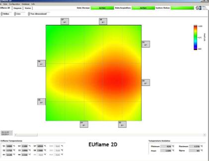 火焰溫度2維軟件能夠獲取所有傳感器的信息。通過對任意傳感器組合,能夠計算相應的2維溫度場分布狀況。軟件應用是在Windows環境。